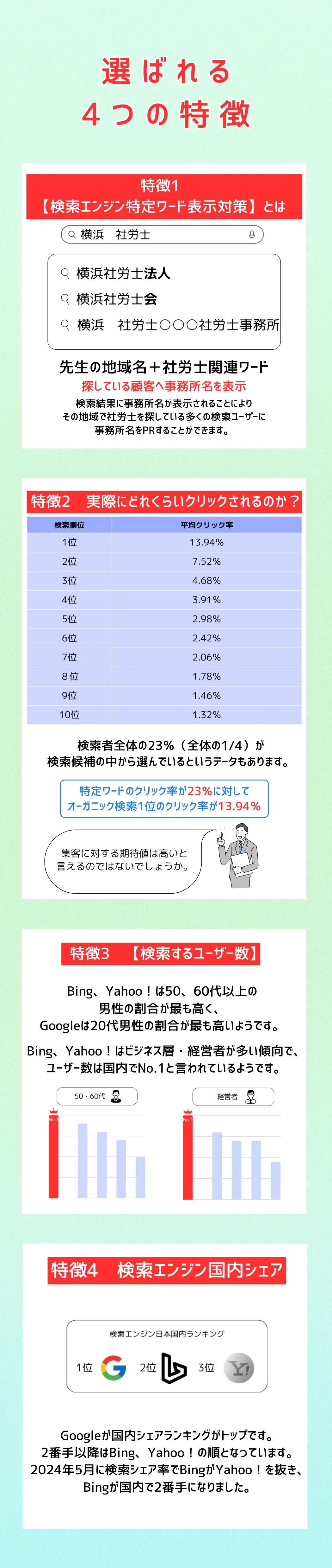 上記成功報酬料金を事前に頂きますが、万が一6ヶ月以内に表示されない場合は、頂いた費用の全額を返金致します。